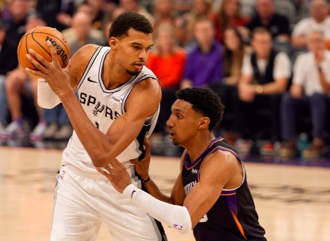 赛季首败!文班亚马9分6失误罕见迷失,布克轰28+13打爆马刺