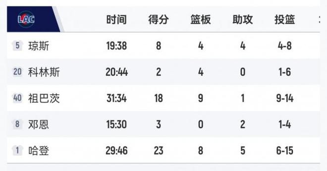 最近这两场比赛,快船都是败给了一个人。本场面对掘金,5个首发被约老师1个人完虐碾压了,约基奇单枪匹马爆轰55分,快船五大先发哈登、邓恩、祖巴茨、科林斯、琼斯合计砍下54分。5个人不如人家一个人得分多,这比赛凭什么能赢?靠谁赢?这么多人加起来了,跟别人一个人都比不了,是不是在传递着一个信号,快船这些首发包括哈登在内,现在真的是一无是处了呢?