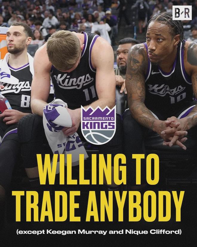名记Fischer近日报道,国王超市大开张,全队除默里和克利福德之外均可被交易,尤其队内几个核心,即拉文+德罗赞+萨博尼斯。
